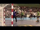 Le gardien de Cesson-Rennes Yann Genty réalise une passe décisive "coast to coast" lors de la 18e journée de D1 de handball face à Chambéry
