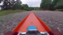 Caméra embarquée sur un circuit de petites voitures de courses Hot Wheels