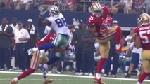 San Francisco 49ers safety Eric Reid intercepts Denver Broncos quarterback Trevor Siemian for a pick six.