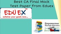 We are providing CA final Mock Test Papers with Solution and all Mock test papers are available in two series with answers. Mock Test Papers are additionally issued test papers for CA Final Students. http://www.eduex.in/ca-final/