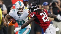 Kenny Stills puts a stiff arm on Desmond Trufant for 18-yard pickup