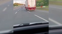 Il a voyagé en fermant la portière du camion avec sa ceinture de sécurité... Ces moments sont filmés.