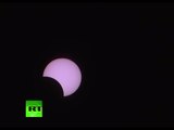 Beautiful footage has emerged of an annular solar eclipse observed from Reunion Island on Thursday night.