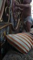 sphynx cats get hysterical when woman is trying to make the bed