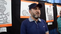 Dha DIŞ HABER- Avrupa'da mültecilerin dramını anlatan karikatür sergisiHakan Aytaş, Düsseldorf, 18 Eylül (DHA) - Karikatürist Oğuz Peker'in mültecilerin dramını anlatan 'Keiner zuhause-Evde kimse yok' adlı sergisi Paris ve İstanbul'un ardından Almanya'nın Düsseldorf kentinde açıldı.Haber