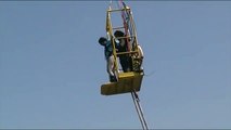 Bungy Jump in scheveningen with views over the famous beach and north sea. Tower with crane for the bungy jumpers.