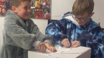 Both of them scream with joy and thank their parents.
