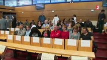 Deux à quatre mois de prison avec sursis ont été requis mercredi 28 septembre contre cinq salariés d'Air France jugés à Bobigny pour leur implication dans l'épisode de la "chemise arrachée" du DRH. Durée: 01:22