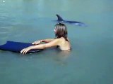 Moko the friendly dolphin and the cute French travelers.