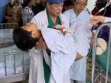 Bizarre footage of the animal, born in China, shows it standing in a pen as a man and woman inspect its deformity.