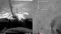 Images were taken by hazard-avoidance cameras on NASA's Mars Exploration Rover Opportunity between January 2004 and April 2015 as the rover traveled 26.2 miles (42.2 kilometers) from its landing location. A map of the rover's path is on the right.