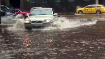 L'homme est arrêté pour sauver le pauvre animal. => http://www.oekais.com/fr/un-automobiliste-sauve-un-chaton-d-une-route-inondee.html
