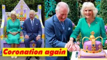 Camilla and Charles enjoy cutting cakes at the new Coronation Garden in Northern Ireland