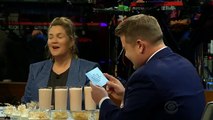 Corden sat down with Fisher, Horan and McGregor as he went over the foods they had in front of them. The foods consisted of a salmon smoothie, beef tongue, bird saliva, herring rollmop, scorpion, fish head, hot sauce and bull penis.