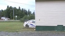 La terrible sortie de route d'une voiture de rallye qui fini dans un camping