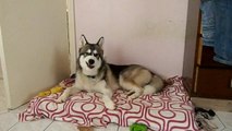 Husky Dog Sings with iPAD