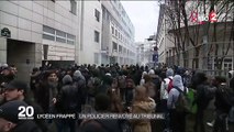 Un gardien de la paix, accusé d'avoir violemment frappé un lycéen manifestant à Paris contre la loi Travail, était jugé jeudi 10 novembre en chambre correctionnelle. Durée: 00:44