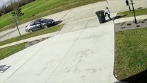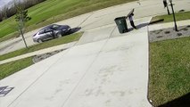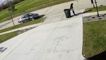 Un gamin se bat avec sa poubelle en tentant de la rentrer par grand vent