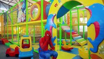 Spiderman is Ticket holder Joker Learn drive Car over toy Masha play at Bounce House Superhero funny