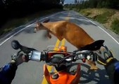 Un motard renversé par un cerf en pleine course !
