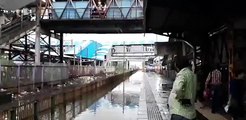 Tren sular altında kalan istasyondan işte böyle geçti