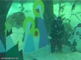 Los buceadores del Aquarium del Zoo de Madrid se han sumergido hasta cuatro metros para colocar este atípico portal de Belén. A 23 grados de temperatura, el equipo del aquarium buceó entre cinco tiburones grises, un gran tiburón toro, un nodriza, dos escualos de puntas negras y un tiburón alfombra para colocar las cinco piezas principales.