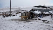 Köye inen kurt sürüsünün içindeki köpeği görenler şaşkına döndü