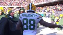 Green Bay Packers running back Ty Montgomery rushes to the edge and in for a 4-yard touchdown.