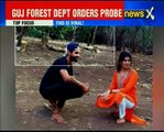 The Gujarat Forest Department on Thursday ordered an inquiry after pictures of cricketer Ravindra Jadeja posing in front of a pride of Asiatic lions at Gir forest ...