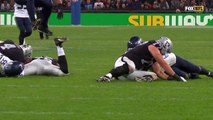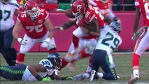 Seattle Seahawks defensive end Frank Clark recovers a fumble by San Francisco 49ers running back DuJuan Harris.