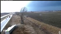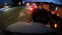 An intense moment is caught on police dash cam when a semi truck takes a turn too fast, causing it to rollover. Credit: Prineville Police Department