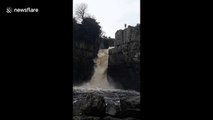 Adrenaline junkie flings self down waterfall during UK floods