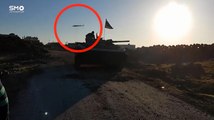 En Syrie, un soldat se trouvant sur un char de combat a été frôlé par un missile de l'organisation terroriste État islamique. On peut voir le projectile passer juste au-dessus de la tête du soldat qui venait de s'accroupir. Quelques secondes plus tôt, l'homme se tenait debout sur le char et aurait certainement été touché par le missile.