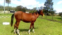 Cavalo eufórico ao encontrar novo brinquedo galinha de borracha