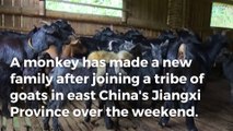 Watch: Abandoned baby monkey is adopted by herd of goats