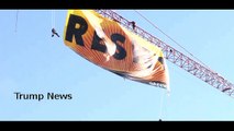 Greenpeace activists unfurl a large banner with the word "Resist" from a construction crane blocks from the White House to protest against President Donald Trump.