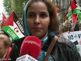 Más de medio millar de personas se han manifestado este sábado en Madrid para "denunciar un atropello manifiesto que es la sentencia del Tribunal Supremo sobre unos hechos ocurridos hace unos tres años", cuando un grupo de ultraderecha atacó la librería Blanquerna, sede del Gobierno catalán en Madrid, durante el acto de celebración de la Diada, el 11 de septiembre de 2013.