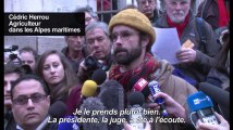 La garde à vue de Cédric Herrou, l'agriculteur poursuivi à Nice pour avoir aidé des migrants, a été levée vendredi soir, de même que pour son frère Morgan et une jeune militante du collectif Roya Citoyenne, a annoncé son avocat. Le jugement devrait être rendu le 10 février. SUJET Durée : 02:09