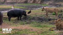 Lion vs Hippo - Lion's Jaw is Breaking Off