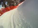 Bibian Mentel-Spee, Lisa Bunschoten and Joany Badenhorst compete in the women's banked slalom SB-LL2 at the 2017 World Para Snowboard Championships in Big White, Canada.