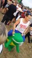 Il danse dans un costume de dinosaure insolite à un festival!