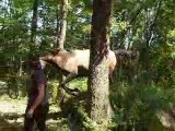 Kahlia travail à pied dans le pré