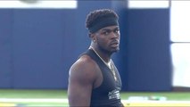 University of Michigan linebacker Jabrill Peppers runs an unofficial 4.46 seconds in the 40-yard dash at the 2017 NFL Scouting Combine.