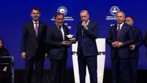 Kulüpler Birliği Vakfı Başkanı Gümüşdağ, açılış konuşmalarının ardından Cumhurbaşkanı Erdoğan'a bir plaket takdim etti. ...daha fazlası için http://www.sporx.com/tv/