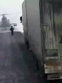 Un pilote d'hélicoptère s'arrete sur la route pour demander sa route car il est perdu en pleine tempête. www.zapirate.com