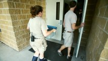 Staff from the organisation lined up on Laguna Beach in Orange County to open the crates containing Kinsey, Syrah, Whiskers and Jyn.