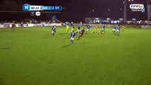 Corner joué à deux et l'action se conclue par une frappe de Fachan à raz de terre