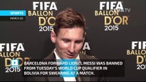 The 29-year-old Barcelona forward was banned from Tuesday's World Cup Qualifier in Bolivia for swearing at a match. FIFA claims that he directed insults at an assistant referee during a game this past Friday. He will not be able to play in any of the four Argentinian Competitive International games. This decision is in line with the FIFA Disciplinary Committee’s previous rulings in similar cases -- FIFA