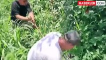 Ağaçta poşete dolanan leyleği, keşkin nişancı köylü kurtardı