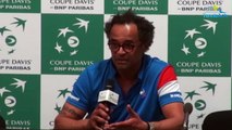 De passage en conférence de presse à J-3 du premier match du quart de finale de Coupe Davis opposant la France à la Grande-Bretagne au Kindarena de Rouen, Yannick Noah a d'abord concédé n'avoir "aucune certitude" sur la composition de l'équipe qu'il pourra aligner de vendredi à dimanche. Ensuite, l'homme fort des Bleus a évoqué la relation particulière qu'il entretient avec nos voisins d'Outre-Manche. "Cette rencontre a une saveur particulière car j'ai deux enfants anglais. Je vais les appeler, j'espère qu'ils vont encourager l'équipe de papa !", a notamment lancé le capitaine tricolore. Ses propos à retrouver en vidéo.